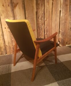 Stolen er helrenovert. Alt av treverk ble demontert og pusset ned. Treet er satt inn med beis og overflatebehandlet med linolje. Boltene som er i messing, er av den gode gamle sorten. De mister aldri sin glans så snart de blir pusset med stålull. Stolen er laget på Stranda i Sunnmøre, og er fra 1938.